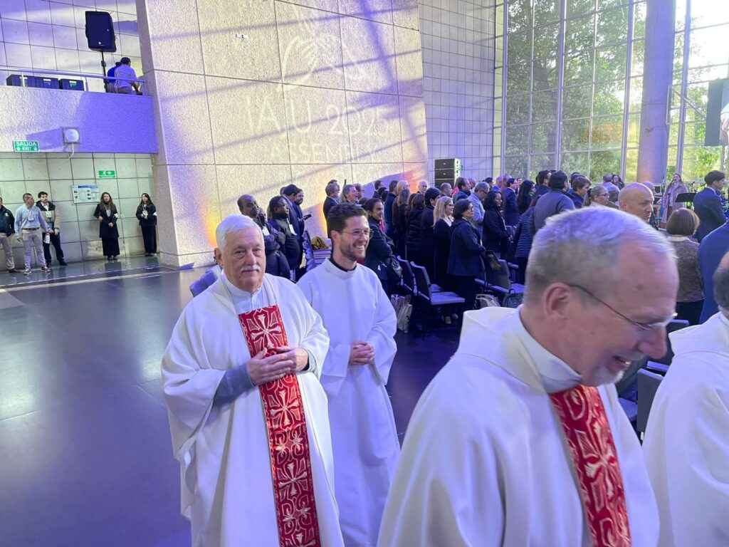 A comienzos de mayo nos llegó un mail a todos los estudiantes de la Pontificia Universidad Javeriana de Bogotá invitándonos a postularnos para ser parte del equipo logístico de la Asamblea de la IAJU (International Association of Jesuit Universities). Yo tenía deseos de estar involucrado en este evento, así que respondí a la convocatoria. Después de un proceso de selección, el equipo organizador me pidió que colaborará durante la Asamblea y también los días previos como asistente del Padre Joseph Christie SJ, jesuita de la India y actual presidente de la IAJU. Además, junto con otros estudiantes de teología estuvimos acolitando en las misas de la Asamblea (la misa inaugural fue en la iglesia de San Ignacio y las otras tres en la Javeriana).