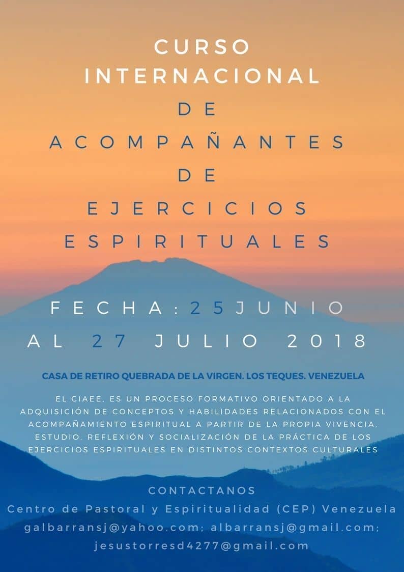 Del 25 de Junio al 27 de Julio del 2018 se estará realizando el XV Curso Taller Internacional para Acompañantes de Ejercicios Espirituales en la Casa de Retiro Quebrada de la Virgen - Los Teques (Venezuela).