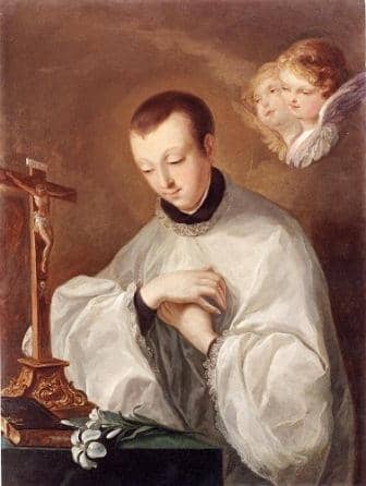 San Luis Gonzaga (1568-1591) renunció a una vida privilegiada y a una herencia principesca para vivir los votos de la vida religiosa hasta el punto de contraer una peste, debido al cuidado desinteresado que él tenia con las personas enfermas. Era el hijo mayor del Marqués de Castiglione y heredero del título familiar. Los Gonzaga eran conocidos como patronos de artistas del Renacimiento, y gobernaban lo que equivalía a un reino.