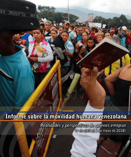 La investigación denominada «Informe sobre la movilidad humana venezolana. Realidades y perspectivas de quienes emigran (9 de abril al 6 de mayo de 2018)», describe las características del fenómeno migratorio de los venezolanos que cruzaron caminando el límite fronterizo entre San Antonio del Táchira (municipio Bolívar) o Ureña (municipio Pedro María Ureña) del estado Táchira (Venezuela), hacia el registro del control migratorio en la oficina de Migración Colombia, ubicada en La Parada, municipio Villa del Rosario, Norte de Santander (Colombia), desde el 9 de abril al 6 de mayo de 2018. Se refiere a los venezolanos que hacen una migración regular y manifiestan migrar para no regresar por ahora a Venezuela.