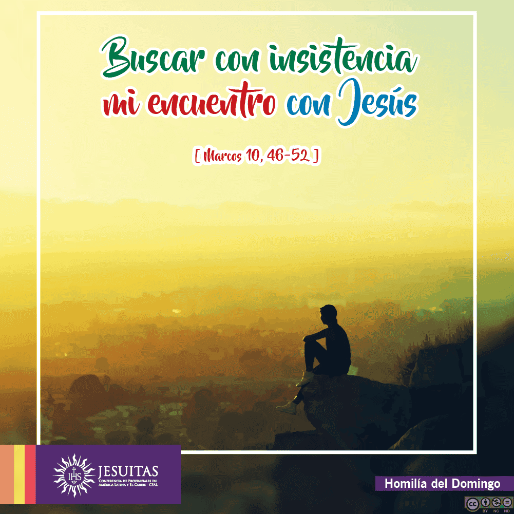 Marcos (10, 46-52) relata la situación de un ciego llamado Bartimeo que está al borde del camino. Él no ve, pero tiene unos buenos oídos que le ayudan a reconocer el paso de Jesús Nazareno en quien puede encontrar su curación. Por eso grita hasta el cansancio: ¡Hijo de David, ten compasión de mí! Bartimeo no ha perdido su aliento de vida. Aquel aliento que le hace pedir sin cansarse. Su petición es a la vez insistente y clamorosa, atrevida y sincera, audaz y confiada, porque cuando se tienen problemas serios, necesidades urgentes o situaciones calamitosas es cuando se pide con el corazón en la mano. La oración sale de lo profundo del alma.