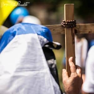 Un manifestante en Managua lleva una cruz. [Jorge Mejía Peralta]