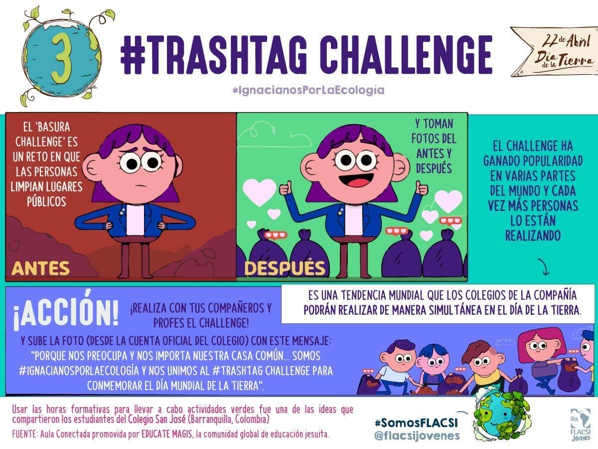 - ¡Haz un registro gráfico de la acción! Y compártela en los medios oficiales de tu colegio (página web y redes sociales). Recuerda etiquetar a @flacsijovenes (Instagram y Facebook), y usar los hashtags: #IgnacianosPorLaEcología y #SomosFLACSI.