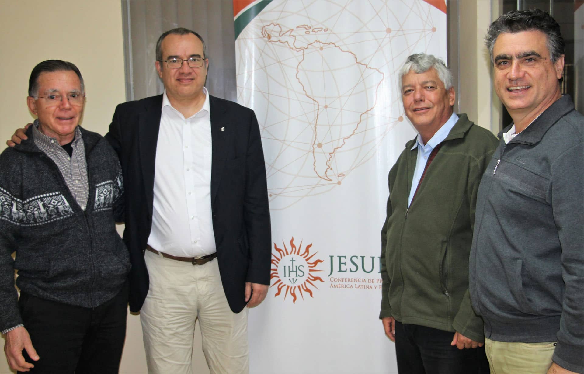 De izquierda a derecha: P. Luiz Fernando Klein S.J., P. Francisco Gismondi S.J., P. Hermann Rodríguez S.J., P. Roberto Jaramillo S.J.