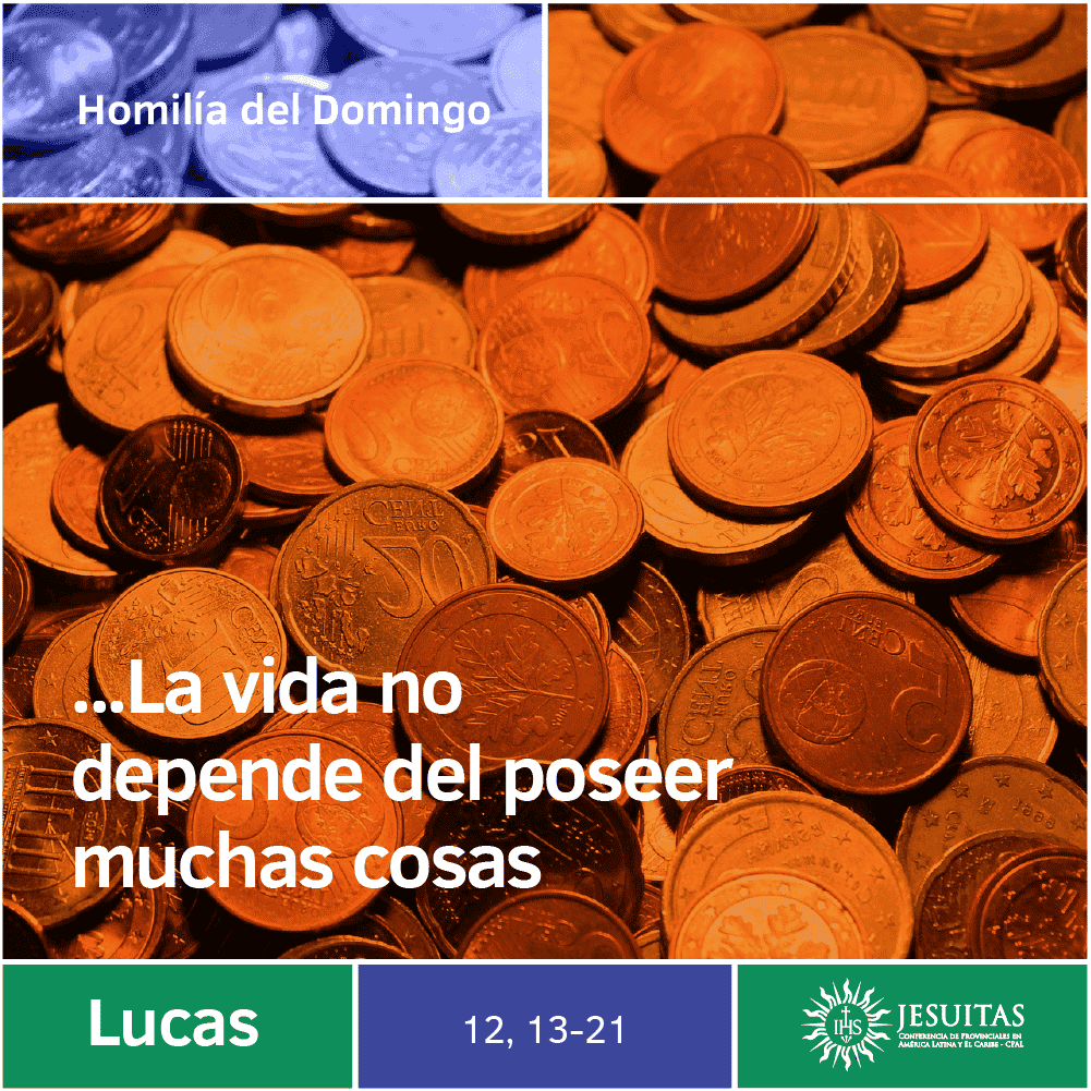 El evangelio de hoy nos presenta a un hombre que pide algo inesperado: “–Maestro, dile a mi hermano que me dé mi parte de la herencia. Y Jesús le contestó: –Amigo, ¿quién me ha puesto sobre ustedes como juez y partidor?” Esta situación suscita una enseñanza de Jesús que no viene nunca de más recordar: “–Cuídense ustedes de toda avaricia; porque la vida no depende del poseer muchas cosas”. Y es la ocasión para que el Señor nos cuente una parábola muy bella: “Había un hombre muy rico, cuyas tierras dieron una gran cosecha. El rico se puso a pensar: ‘¿Qué haré? No tengo dónde guardar mi cosecha.’ Y se dijo: ‘Ya sé lo que voy a hacer. Derribaré mis graneros y levantaré otros más grandes, para guardar en ellos toda mi cosecha y todo lo que tengo. Luego me diré: Amigo, tienes muchas cosas guardadas para muchos años; descansa, come, bebe, goza de la vida.’ Pero Dios le dijo: ‘Necio, esta misma noche perderás la vida, y lo que tienes guardado, ¿para quién será?’ Así le pasa al hombre que amontona riquezas para sí mismo, pero es pobre delante de Dios”.