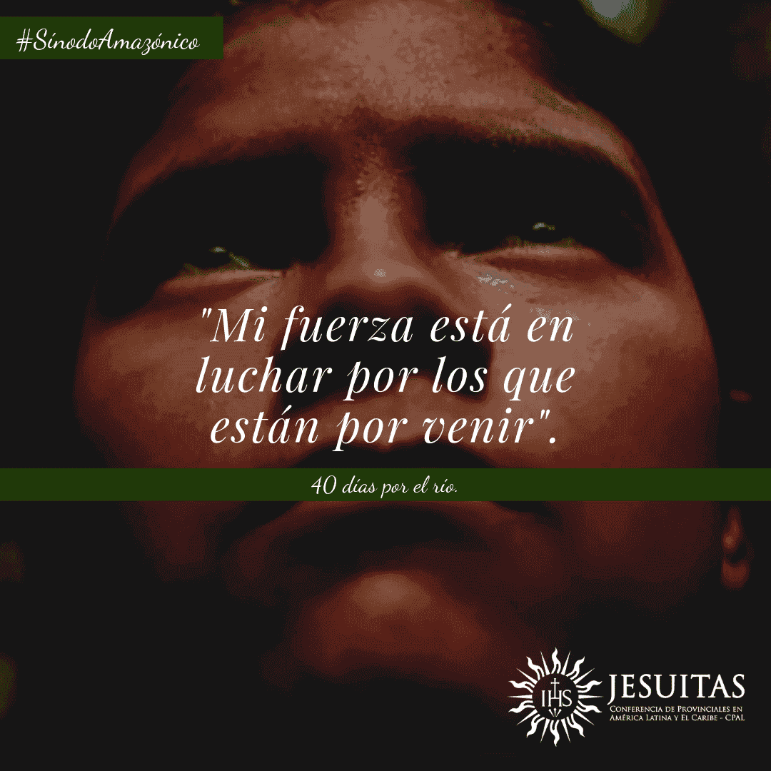 En este Sínodo Amazónico, y en la profunda incertidumbre del momento presente por la crisis ecológica y por los signos de muerte cotidiana que viven muchos de los pueblos aquí en este territorio, ponemos toda nuestra esperanza en Ti para que venga tu reino y destrones a todo el que oprime. Escuchamos tus palabras, y reconocemos Tu llamado que nos viene también desde las vidas de los pueblos y comunidades, y ahí encontramos el valor de saber que la fuerza viene solo y únicamente de Ti. Sentimos en las pocas, pero muy ruidosas resistencias internas y externas, la invitación a confiar en que si esto es obra Tuya y tu voluntad, ahí estarás para acompañarnos y se dará el fruto anhelado: la conversión pastoral, la conversión ecológica y la conversión sinodal.