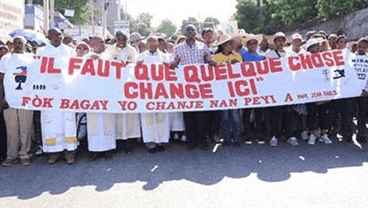 - Después de anunciar que están obligados a mantener las puertas de sus instituciones cerradas hasta que se encuentre un final feliz para la crisis, el pueblo religioso católico de Haití marchó pacíficamente en las principales ciudades de Haití el martes 22 de octubre de 2019, en compañía de miles de fieles para manifestarse contra la corrupción, falta de servicios públicos, costo de vida, etc. Sin embargo, según los organizadores de la iniciativa, las autoridades haitianas han hecho todo lo posible para obtener la cancelación de la marcha, argumentando en particular que la Policía Nacional de Haití puede no garantizar la seguridad de los participantes. Un intento que falló antes la determinación de los fieles que querían que todo expresara su descontento ante la crisis en la que el país se ha estancado durante más de un
