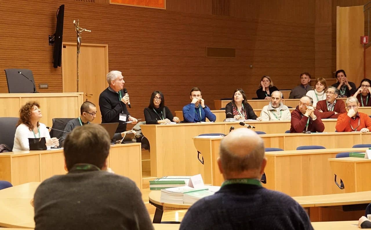 El miércoles 18 de diciembre, después de un momento de “prima colazione”, reunidos en el Aula de la Congregación General, pudimos escuchar en primer lugar al equipo del Secretariado para la Justicia Social y la Ecología hacer un repaso del Congreso de su 50º aniversario, que tuvo lugar del 4 al 8 de noviembre. Numerosos miembros de la Curia pudieron participar en este importante encuentro, otros, sin embargo, tuvieron que contentarse con la información que se lee en los sitios web del SJES y de la Compañía. Pero los presentes participaron muy activamente. Tras un breve descaso tuvieron ocasión de charlar sobre el Congreso en pequeños grupos, y gozar de una presentación de los aspectos más destacados de la semana y de la proyección de una síntesis en vídeo. Finamente se celebró una sesión plenaria para sacar mayor fruto y asegurar sus efectos a largo plazo.