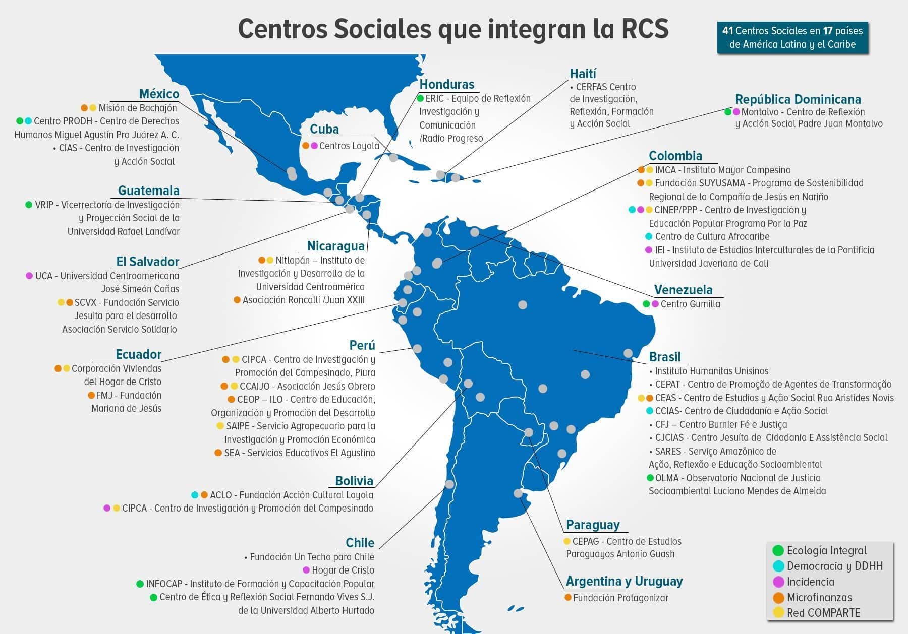 Mapa de los Centros Sociales ubicados en América Latina y el Caribe