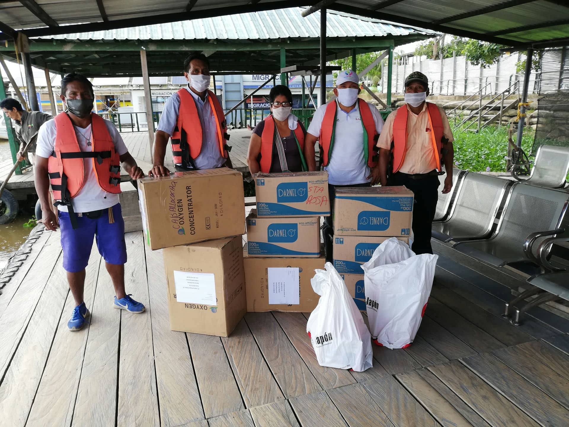 Debido a nuestra ubicación en frontera, también hemos llevado a cabo acciones en los países vecinos. Se han comprado medicinas, material de bioseguridad y estabilizadores de energía para los concentradores de oxígenos, que con el apoyo del Alcalde y líderes de la Iglesia, se han entregado a los poblados peruanos de Santa Rosa, Islandia y Caballo Cocha. Por último, ante la situación alarmante de los pueblos indígenas de Brasil, el SJPAM hemos colaborado económicamente a las asociaciones brasileiras de los Indígenas Kocamas y Munduruku.