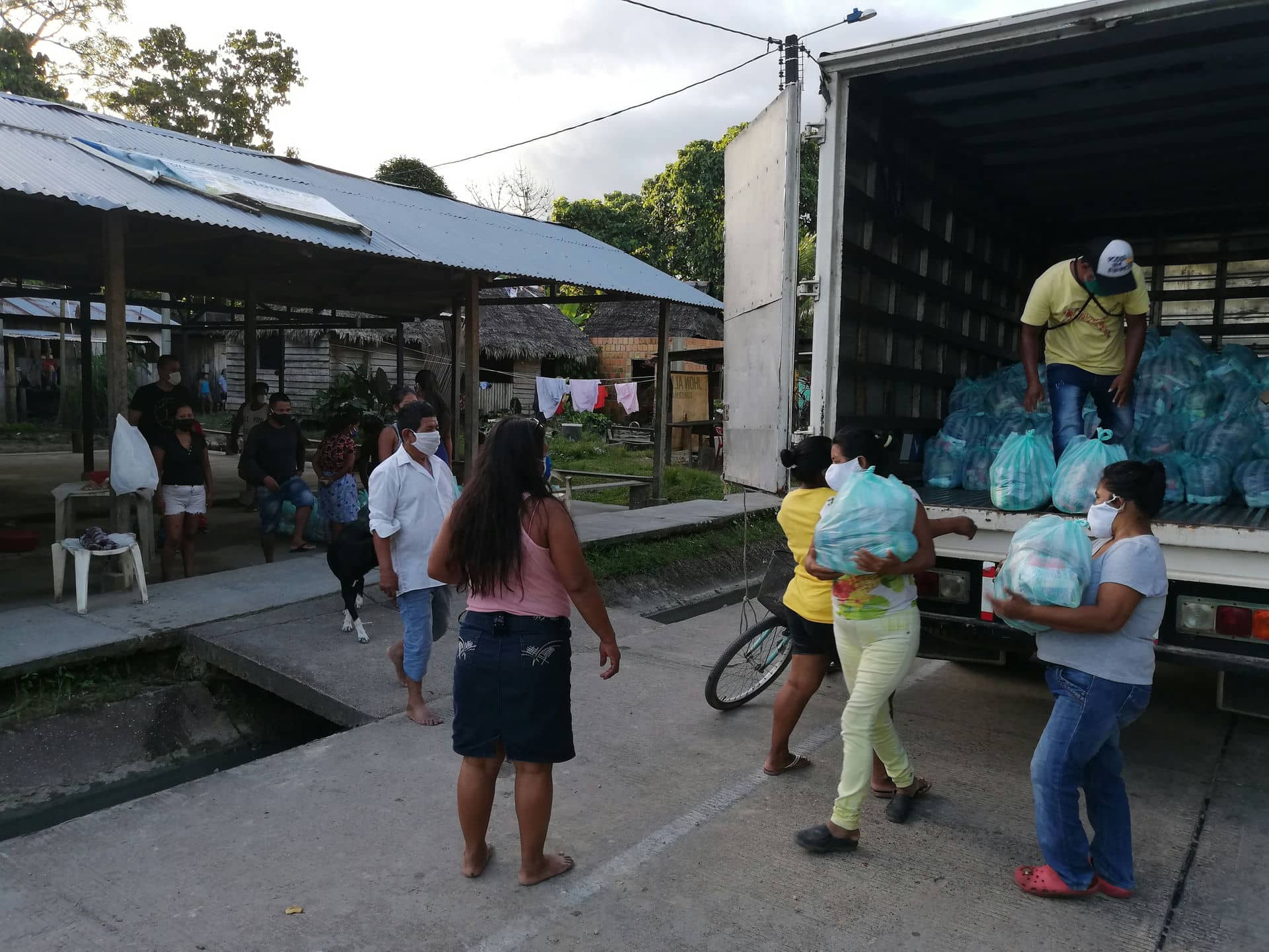 Por otro lado, se han adquirido 650 kits que se han repartido a las 8 comunidades de la Parroquia de Nazareth, pertenecientes al Vicariato de Leticia. Estos kits se conforman de alimentos, medicinas, tela para tapabocas, materiales de higiene, bioseguridad y desinfeccion. Somos conscientes del riesgo que supone el contacto físico para la propagación del virus; es por ello que quisiéramos resaltar el importante trabajo logístico y la coordinación entre diversos actores. Una suma de esfuerzos imprescindibles para llevar a cabo la entrega de manera segura.