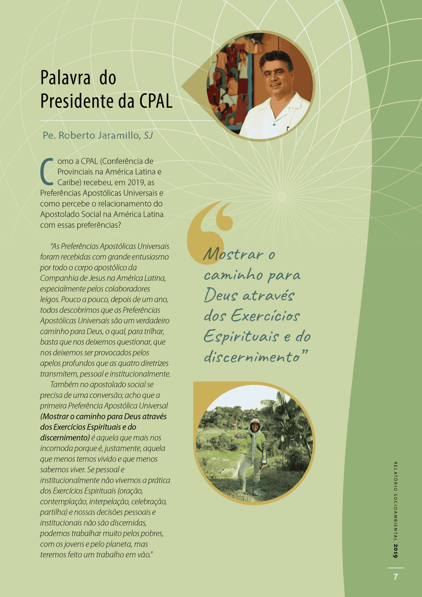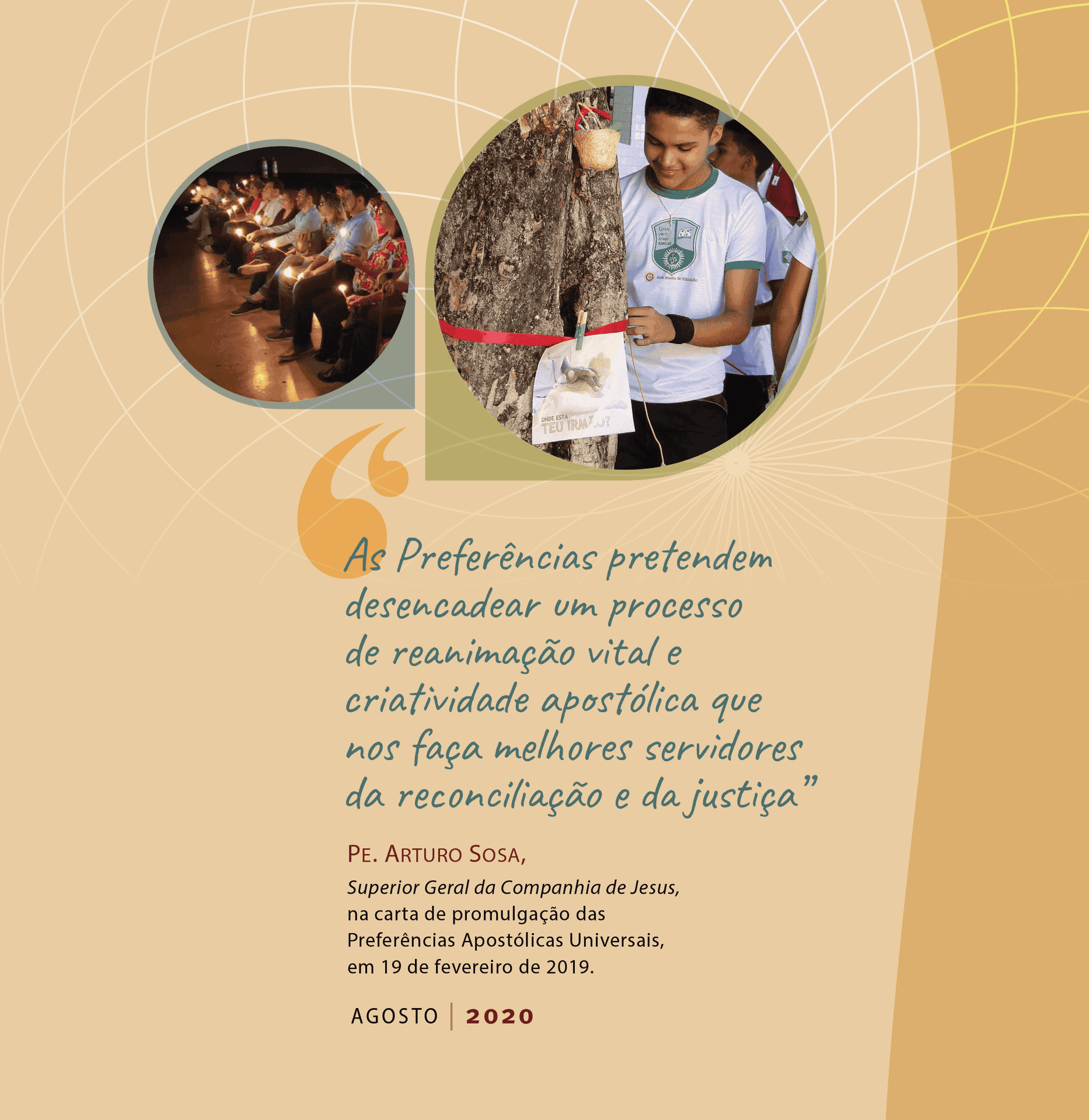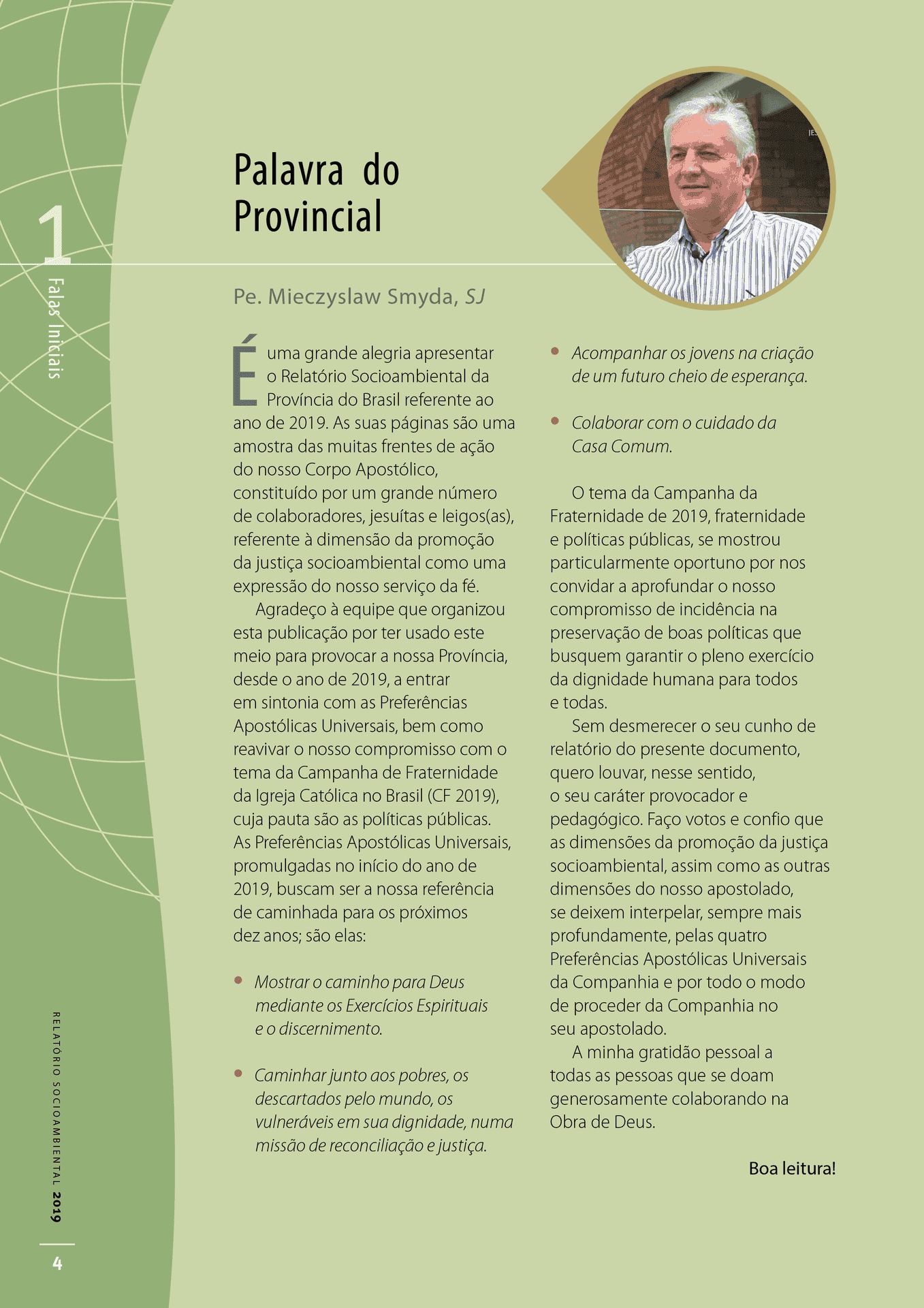 Agradezco al equipo que organizó esta publicación por utilizar este medio para provocar a nuestra Provincia, desde 2019, a estar en sintonía con las Preferencias Apostólicas Universales, así como a reavivar nuestro compromiso con el tema de la Campaña de Fraternidad de la Iglesia Católica en Brasil (CF 2019), cuya agenda son las políticas públicas.