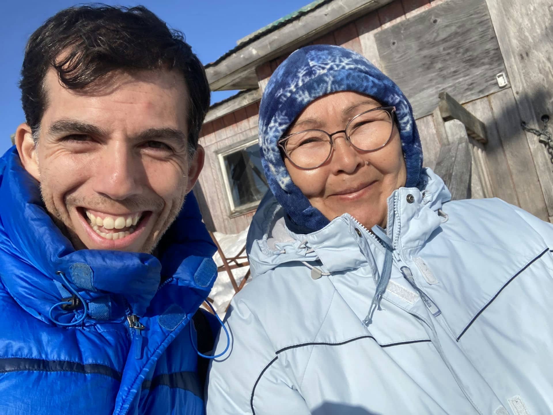 Con Noel, con quien organizó las celebraciones de Semana Santa en Chefornak