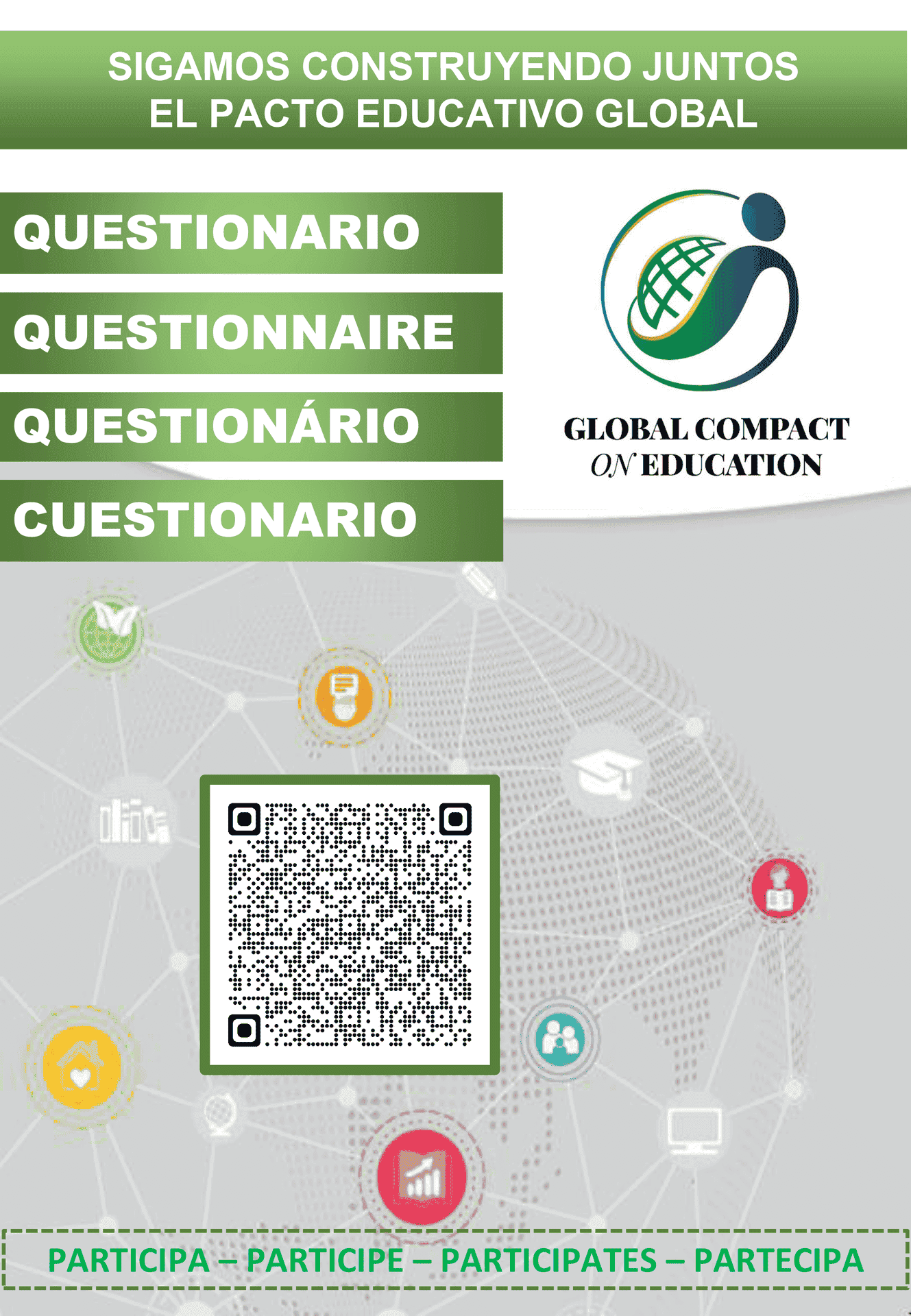 La Conferencia de Provinciales Jesuitas de América Latina y el Caribe - CPAL en colaboración con la Oficina Internacional de la Educación Católica - OIEC, con la Unión Internacional de las Superioras Generales - UISG, la Unión de los Superiores Generales - USG y la Universidad LUMSA (Università Maria Santissima Assunta) presentan el cuestionario "Construyendo juntos el Pacto Educativo Global" - PEG, una consulta que permitirá a los actores responsables, tomar conciencia sobre algunas de las acciones que se están acometiendo para ir tejiendo con otros esta alianza del Pacto Educativo Global, así como también, sugerir caminos a recorrer juntos para hacer realidad este Pacto desde lo local.