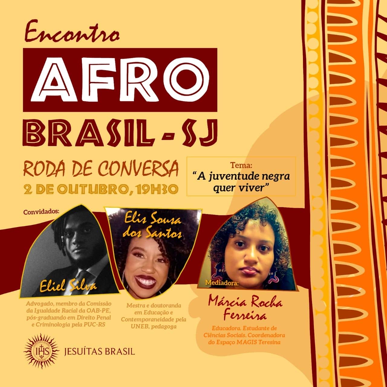 El día 02 de octubre, se realizó la 2ª rueda de conversación de la Articulación Afro Brasil SJ. Con el tema “La juventud negra quiere vivir”, inspirado en una antigua campaña de la Pastoral de la Juventud de la Conferencia de Obispos de Brasil (CNBB). La actividad fue coordinada por la joven Márcia Rocha, del Espacio Magis de la ciudad de Teresina, representando al Programa Magis Brasil.